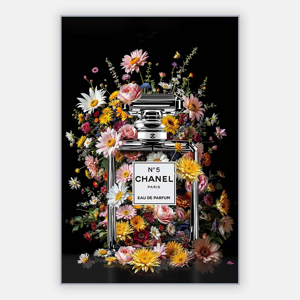 Schilderij Floral No.5 is onderdeel van onze collectie Bloemen schilderij. Geef je interieur een vleugje luxe met Floral No. 5, een betoverend schilderij met bloemen waarin mode en natuur samenkomen. Dit stijlvolle Coco Chanel schilderij straalt elegantie uit met een explosie van kleurrijke bloemen rond een iconische parfumfles. Het perfecte Coco schilderij voor liefhebbers van tijdloze klasse en verfijnde kunst. Of je nu een passie hebt voor Chanel bloemen of op zoek bent naar een uniek No. 5 schilderij, deze wanddecoratie voegt een chique uitstraling toe aan elke ruimte. Laat je inspireren door de combinatie van bloem Chanel en haute couture in dit adembenemende Coco Chanel schilderij.