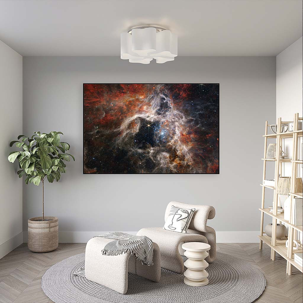 De James Webb foto van Tarantula Nebula is onderdeel van onze collectie James Webb Telescope, NASA & Ruimtevaart. Het ArtFrame met een foto vastgelegd door James Webb Telescope, brengt de magie van het universum in je interieur. Deze unieke  foto toont een adembenemend beeld van de ruimte. Perfect voor liefhebbers van astronomie en moderne decoratie.