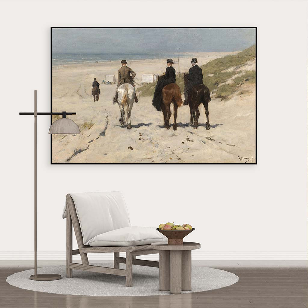 Het schilderij Morgenrit langs het strand is onderdeel van onze collectie ArtFrame oude meesters. Dit beroemde schilderij is geschilderd door Anton Mauve.
