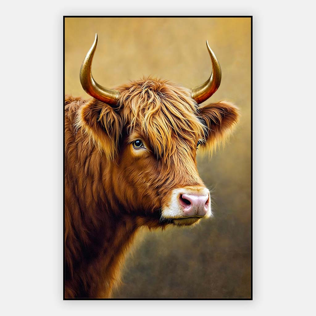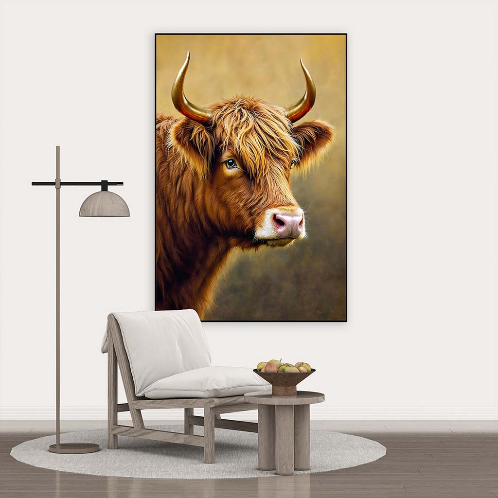 Breng karakter en rust in je interieur met dit unieke schilderij Schotse hooglander. De warme kleuren, gedetailleerde vacht en opvallende gouden hoorns maken dit kunstwerk hooglander tot een echte blikvanger. Deze wanddecoratie hooglander in een luxe artframe, straalt kracht en sereniteit uit. Perfect voor een modern, landelijk of industrieel interieur. Het hooglander schilderij met gouden details combineert stoerheid en elegantie in één beeld. Zoek je een eigentijds schilderij met een twist? Dan is dit het ideale stuk. Deze schotse hooglander kunst is meer dan decoratie—het is een stijlstatement.