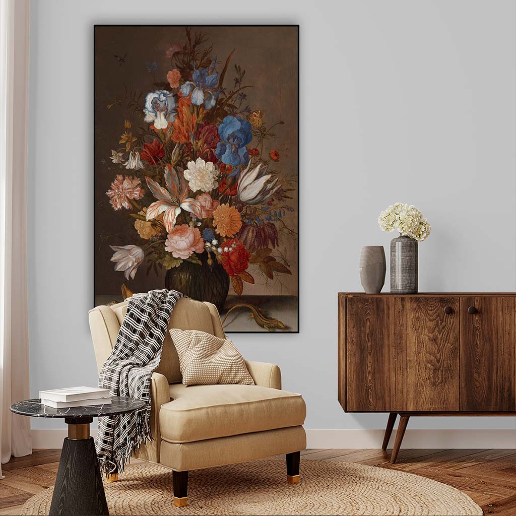 Stilleven met bloemen is een prachtig bloemenschilderij gemaakt door de beroemde schilder Balthasar van der Ast. Het schilderij met bloemen is onderdeel van de collectie Bloemen van oude meesters. Breng kunst tot leven met een stijlvol