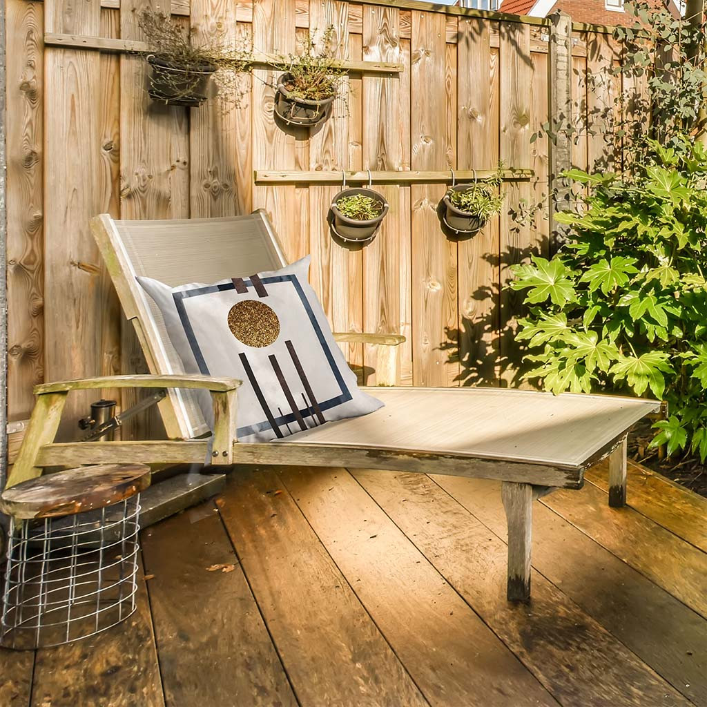 Onze buitenkussens worden geprint op speciaal materiaal voor buiten. De buitenkussens worden gemaakt van slijtvast én waterafstotend materiaal. Zo gaan jouw kussens extra lang mee!