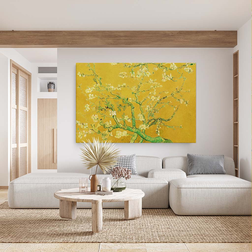 Het canvas schilderij Amandelbloesem goud is onderdeel van onze collectie schilderij Oude meesters met een knipoog. Breng een warme en luxe uitstraling in huis met dit unieke schilderij op canvas van Amandelbloesem in okergeel / goud, geïnspireerd door Van Gogh. Het schilderij combineert klassieke kunst met een eigentijdse twist en past perfect in moderne en klassieke interieurs. Het moderne kunstwerk geeft een frisse interpretatie van oude meesters met een knipoog en voegt een warme, sfeervolle uitstraling toe aan elke ruimte. Perfect voor liefhebbers van oude meesters in modern jasje en een stijlvolle blikvanger in je interieur.