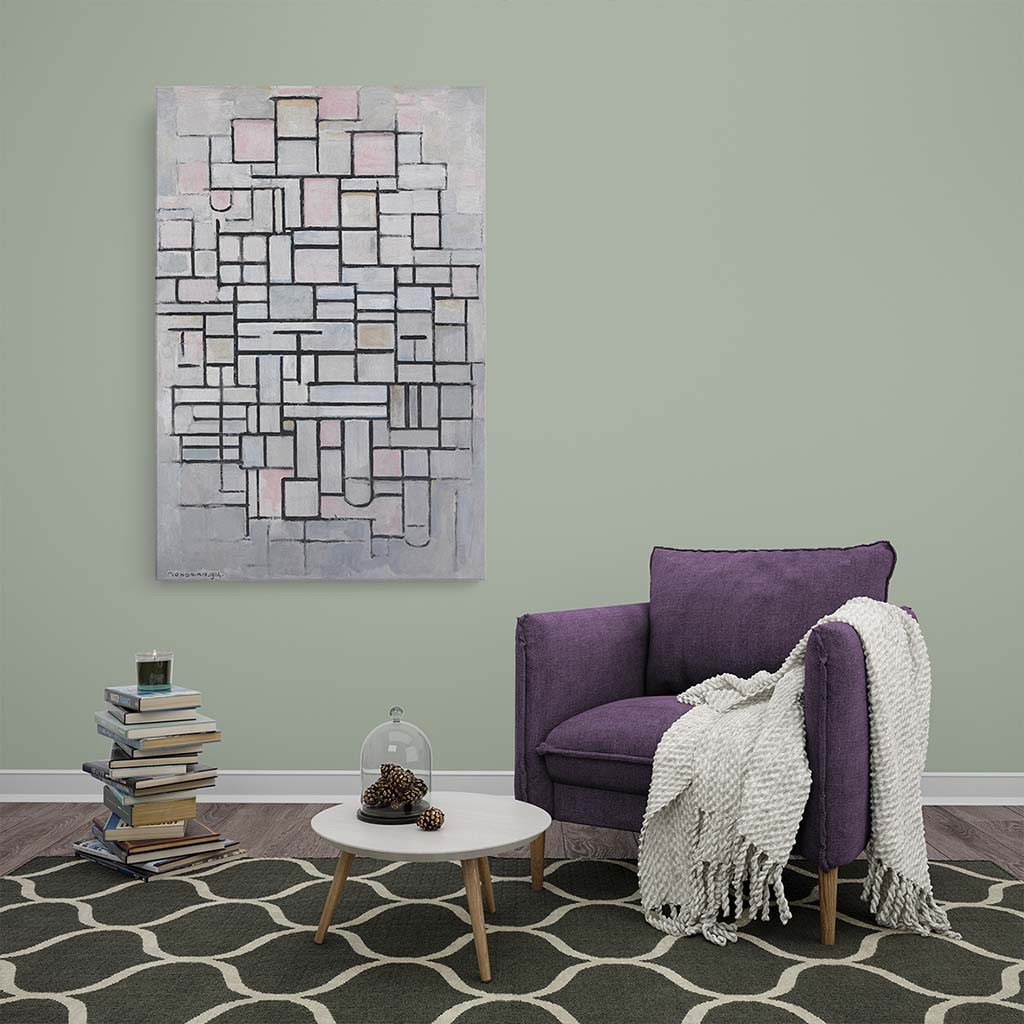 Dit canvas paneel bevat de afbeelding van het beroemde schilderij “Composition No IV”, gemaakt door één van de oude meesters, Piet Mondriaan.