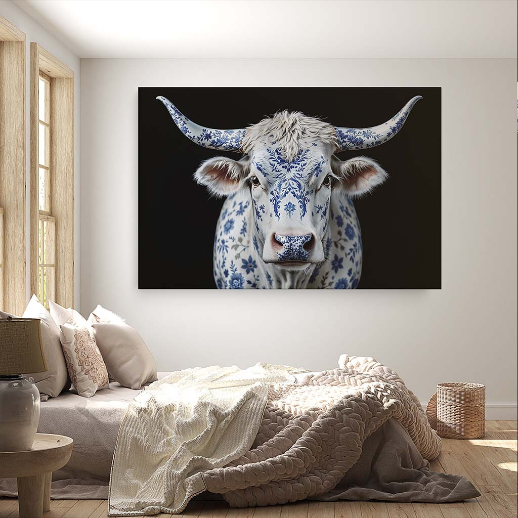 Breng een stukje Nederlandse traditie in huis met dit bijzondere koeien schilderij canvas van een koe in Delfts blauw stijl. Dit koeienkop schilderij op canvas combineert klassieke patronen met een eigentijds ontwerp en past perfect in zowel moderne als landelijke interieurs. Het canvas koeien schilderij straalt karakter en elegantie uit, terwijl de gedetailleerde Delfts blauw patronen een eerbetoon zijn aan iconische Nederlandse kunst. Of je nu op zoek bent naar een Delfts blauw koe schilderij, een kunstwerk met een traditionele twist, of een unieke koe delfts blauw decoratie, dit schilderij zal elke ruimte verfraaien. Een absolute must-have voor liefhebbers van kunst en cultuur!
