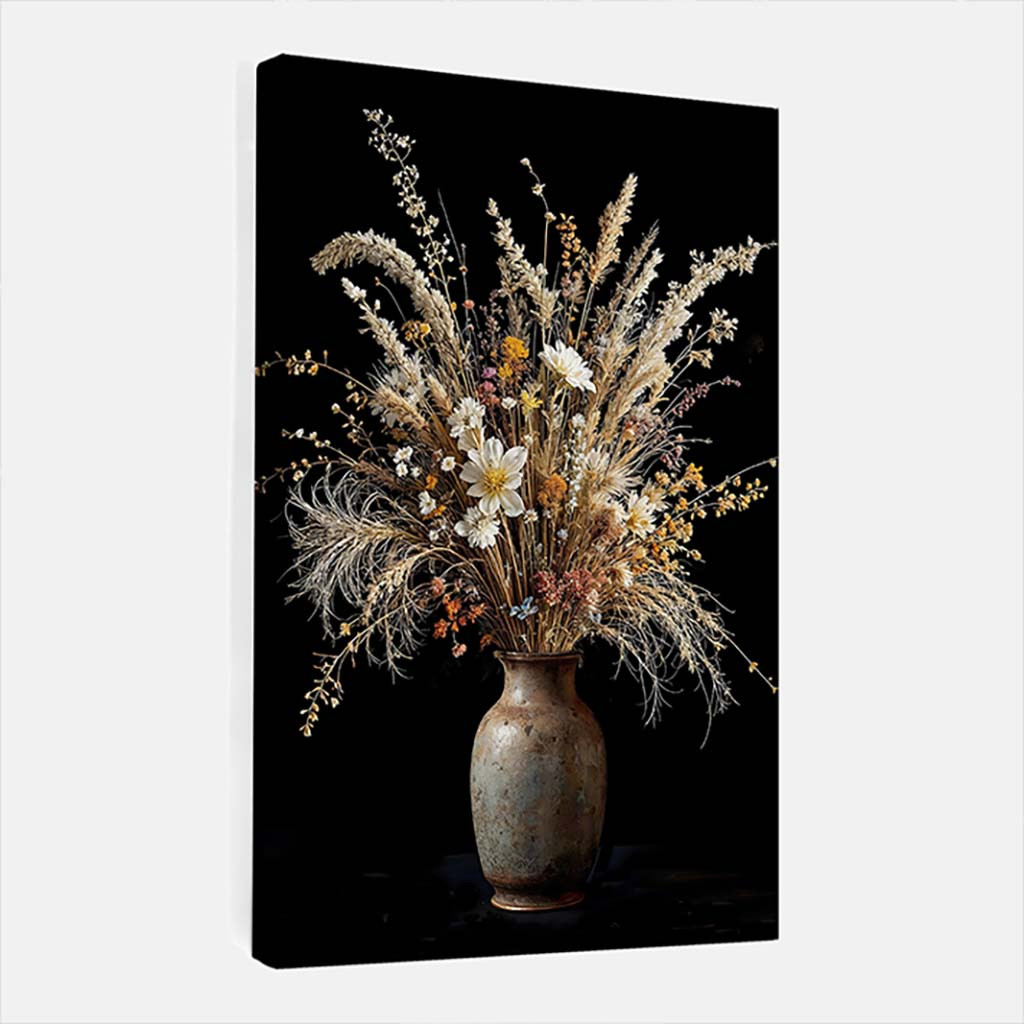 Canvas Schilderij Droogbloemen in oude vaas