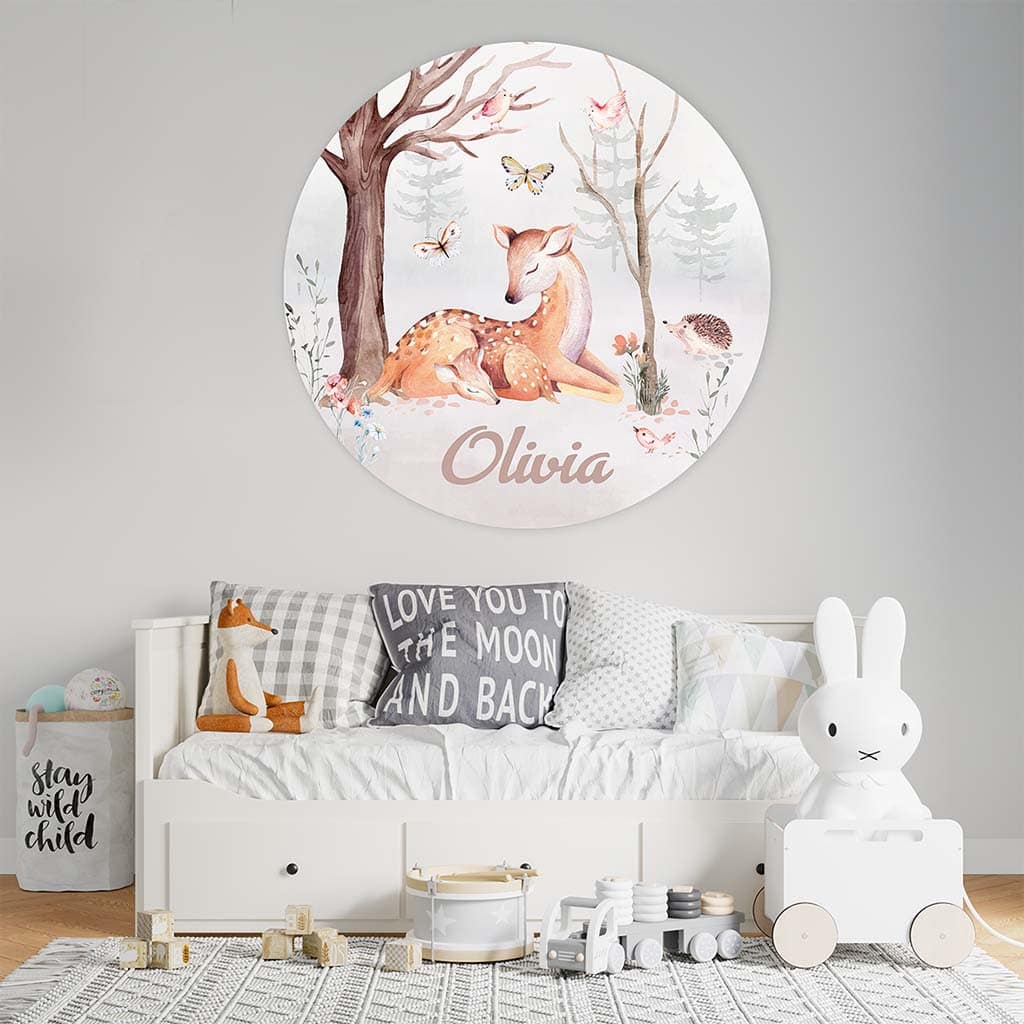 Gepersonaliseerde muurcirkel met bosdieren voor de kinderkamer of babykamer