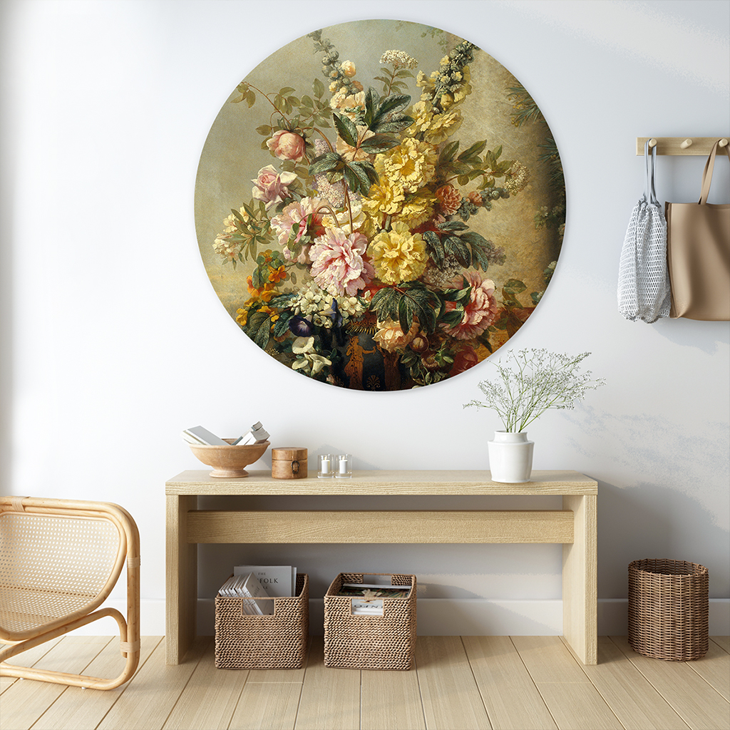 Til je interieur naar een hoger niveau met de muurcirkel Grote vaas met bloemen van Josep Mirabent. Dit prachtige bloemenkunstwerk straalt elegantie uit dankzij de rijke kleuren en verfijnde details. De ronde vorm van de muurcirkel voegt een eigentijdse touch toe, waardoor dit klassieke schilderij ook perfect past in moderne interieurs. De wandcirkel met bloemen is beschikbaar in hoogwaardige materialen zoals Aluminium Dibond, Plexiglas, Forex en Geborsteld Aluminium, zodat je kunt kiezen welke uitstraling het beste bij jouw interieur past. Met deze muurcirkel haal je niet alleen een kunstwerk in huis, maar ook een unieke en stijlvolle decoratie die elke ruimte verrijkt.