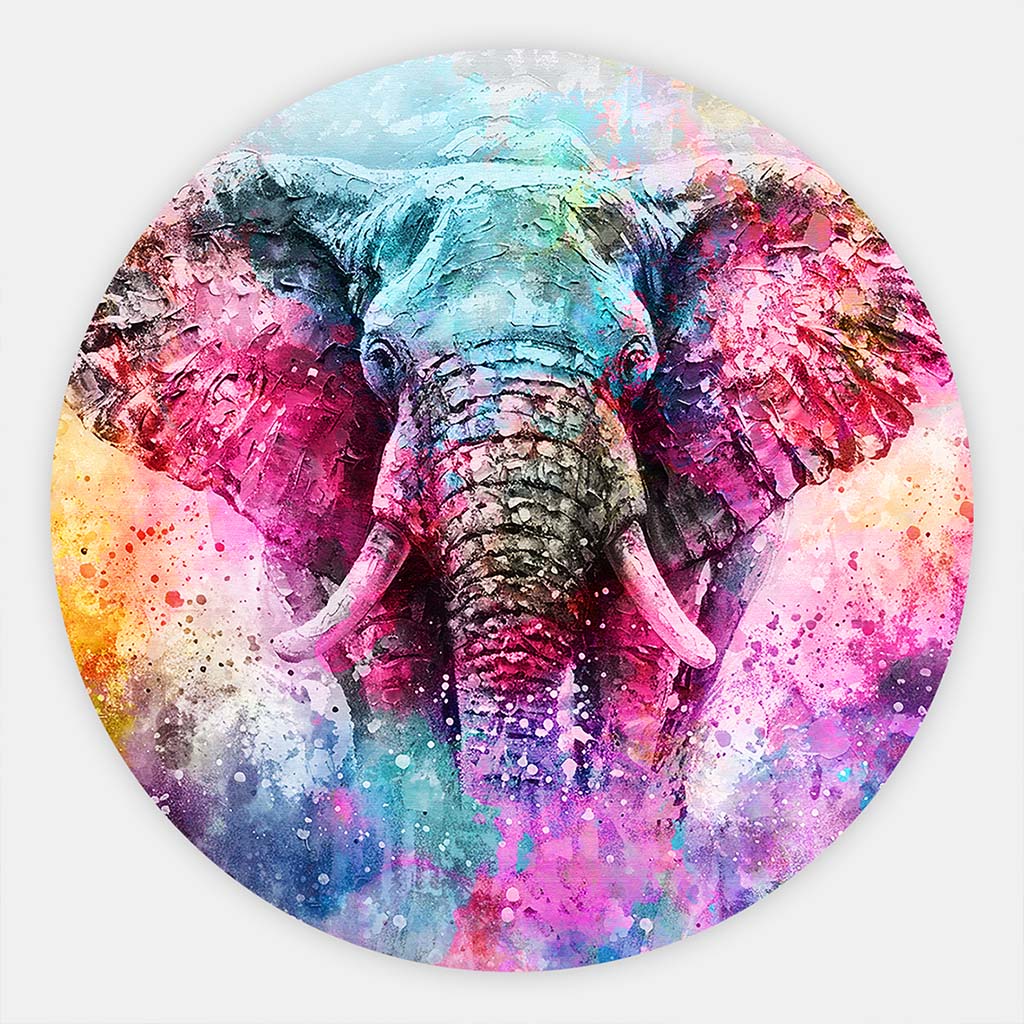 De muurcirkel olifant in felle kleuren is onderdeel van de collectie muurcirkel dieren. Rainbow Giant is een indrukwekkend rond olifanten schilderij in een abstracte stijl die kracht, vreugde en kleur samenbrengt. Dit ronde schilderij olifant is meer dan alleen decoratie; het is een statement piece dat jouw interieur direct een levendige uitstraling geeft. Dankzij de spetterende kleuren en creatieve details komt de olifant tot leven als nooit tevoren. Dit kunstwerk is verkrijgbaar op verschillende materialen, waardoor je het perfect kunt afstemmen op jouw woonruimte. De wandcirkel olifant is een ode aan de schoonheid en kracht van de natuur, verpakt in een abstract kunstwerk dat elke kamer transformeert.