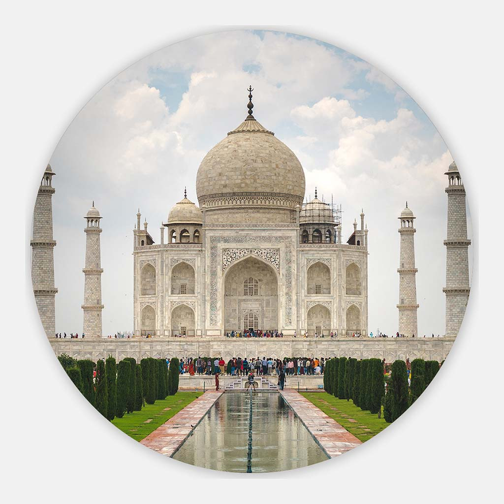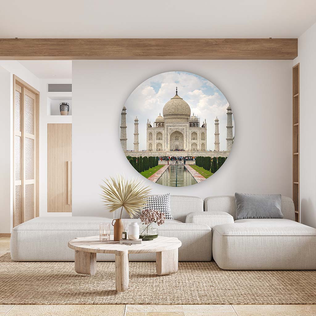 Met de muurcirkel Taj Mahal India breng je direct sfeer in je woonkamer, slaapkamer, gang of elk ander vertrek in je huis. Een muurcirkel is niet alleen te gebruiken als wanddecoratie binnen. Zo kun je een muurcirkel op Dibond, ook buiten hangen. Kies voor een muurcirkel uit onze collectie of laat je eigen foto op een muurcirkel printen. Muurcirkels kunnen worden geprint op Dibond, Forex, Aluminium en Hout (Multiplex).
