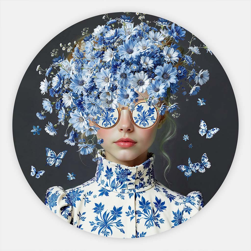 De muurcirkel Vision in Delft Blue is onderdeel van de collectie muurcirkel Schilderij Delfts Blauw. Geef je interieur een stijlvolle en artistieke touch met Vision in Delft Blue, een uniek Delfts blauw schilderij met een moderne twist. Dit prachtige schilderij van een vrouw met bloemen combineert tijdloze elegantie met de karakteristieke schoonheid van Delfts blauw bloemen. De verfijnde details en zachte blauwtinten maken dit kunstwerk een echte eyecatcher.