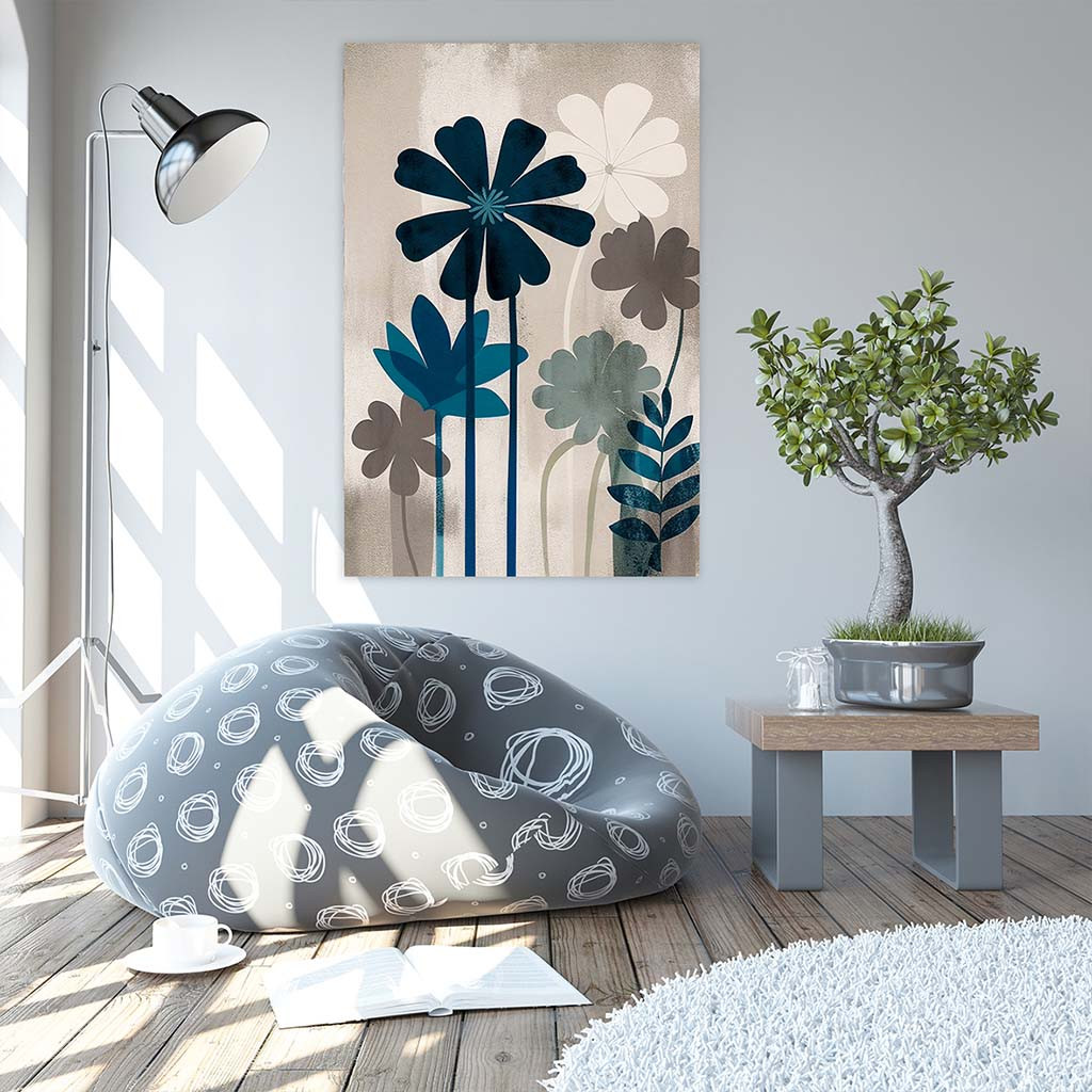 Voeg een vleugje moderne kunst toe aan je interieur met dit abstracte bloemen schilderij, verkrijgbaar op Aluminium Dibond, Forex, Plexiglas en Geborsteld aluminium. Dit kunstwerk in mooie blauw en zilver grijze tinten, toont een stijlvolle interpretatie van bloemen, met zachte tinten en gedurfde vormen die passen bij een modern en eigentijds interieur. Het abstracte bloemenontwerp straalt frisheid en verfijning uit, en de veelzijdigheid in afwerking maakt dit schilderij perfect voor verschillende ruimtes, van de woonkamer en slaapkamer tot kantoor en hal.