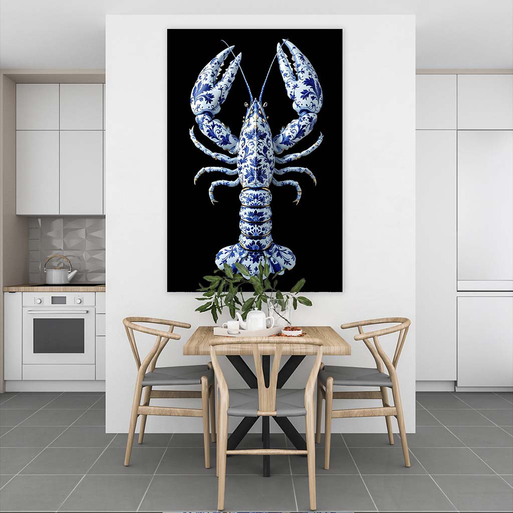 Het schilderij Kreeft Delfts Blauw met zwarte achtergrond is onderdeel van de collectie schilderij Delfts Blauw schilderij. Breng een stijlvol statement in uw interieur met dit unieke Delfts blauw schilderij van een kreeft. Dit kunstwerk met een zwarte achtergrond benadrukt de delicate details van de Delfts blauwe motieven en creëert een indrukwekkend contrast dat zowel traditioneel als modern aanvoelt. Perfect als wanddecoratie Delfts blauw, voegt dit schilderij een vleugje verfijning toe aan uw woonkamer, kantoor of slaapkamer. Of u nu zoekt naar een schilderij Delfts blauw, een Delfts blauw wanddecoratie, of een exclusief Delfts blauw kreeft ontwerp, dit kunstwerk biedt het allemaal. De prachtige weergave van de kreeft in Delfts blauw maakt dit schilderij een tijdloze toevoeging aan elk interieur. Ideaal voor kunstliefhebbers die houden van originele en klassieke details.