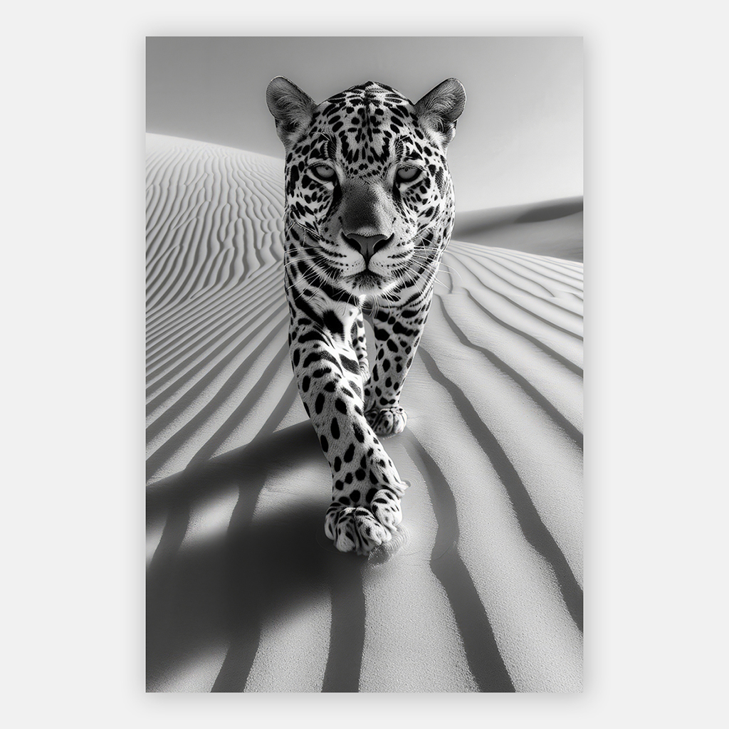 Dit luipaard schilderij is onderdeel van de collectie dieren schilderij. Dit indrukwekkende schilderij luipaard toont de kracht en elegantie van dit iconische roofdier in een stijlvol zwart-wit ontwerp. De luipaard beweegt doelgericht door een sereen landschap, waarbij licht en schaduw zorgen voor diepte, spanning en een tijdloze uitstraling. Het minimalistische kleurgebruik maakt dit luipaard schilderij perfect voor moderne, industriële en luxe interieurs.