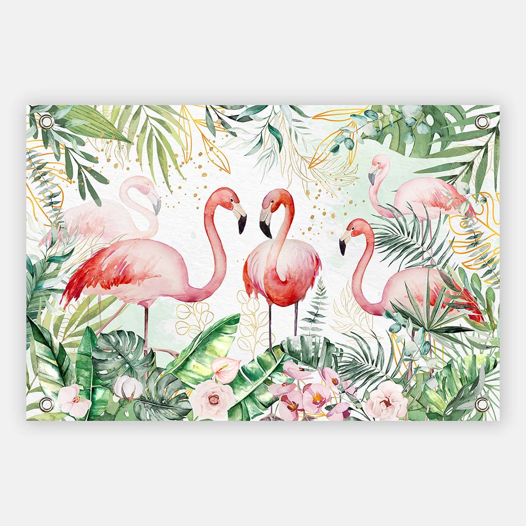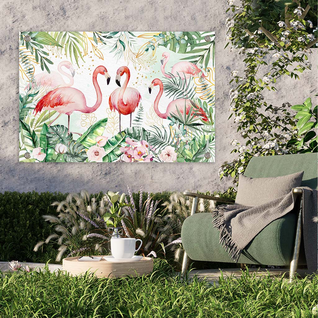 Tuinposter met flamingo’s in jungle omgeving (liggende variant)