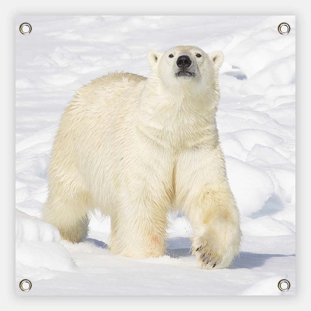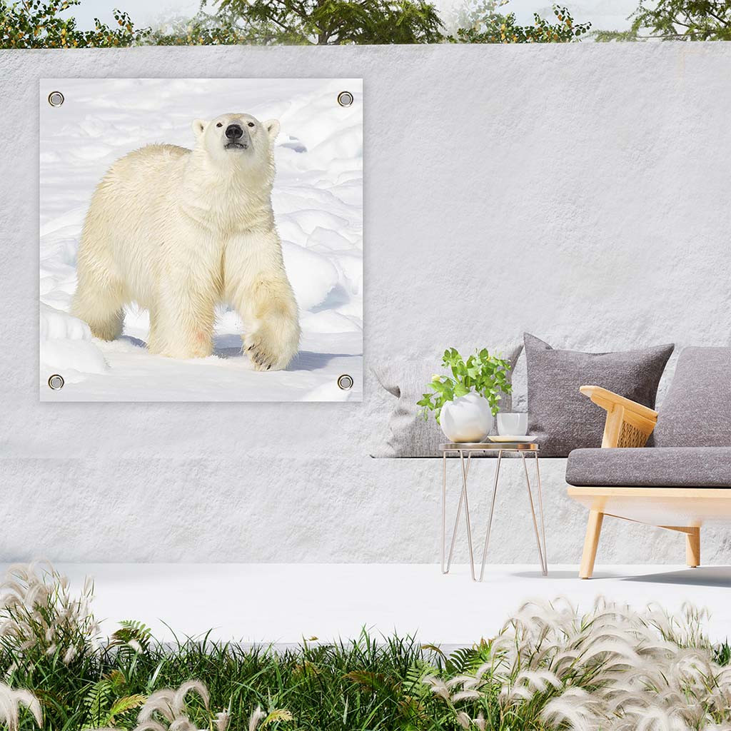 Heb jij een saaie muur of schutting in je tuin? Geef nu sfeer aan jouw tuin, balkon of dakterras met een met deze unieke Tuinposter IJsbeer. Een tuindoek worden geleverd met één ring in elke hoek zodat je ze makkelijk kunt ophangen.