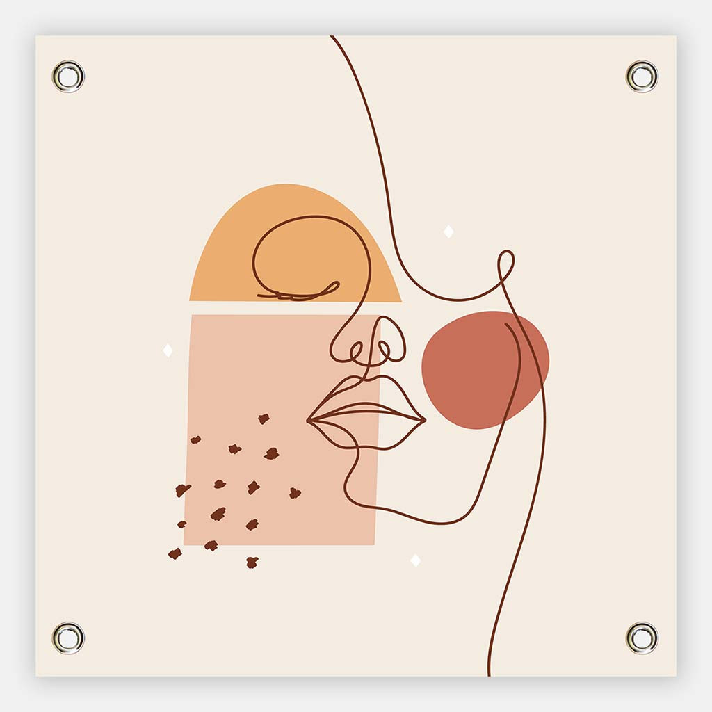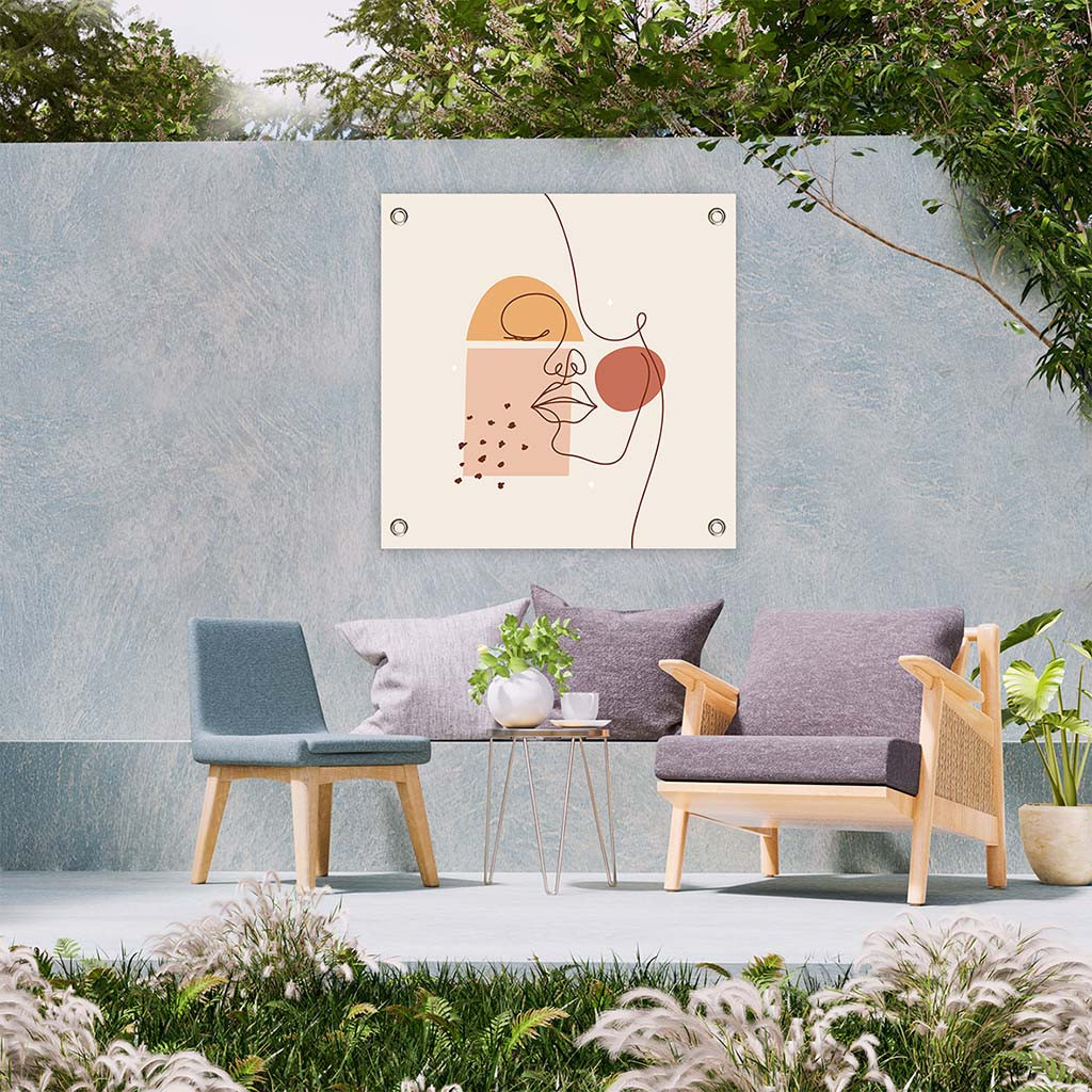 Heb jij een saaie muur of schutting in je tuin? Geef nu sfeer aan jouw tuin, balkon of dakterras met een met deze unieke Tuinposter vrouwengezicht line art 2. Een tuindoek worden geleverd met één ring in elke hoek zodat je ze makkelijk kunt ophangen.
